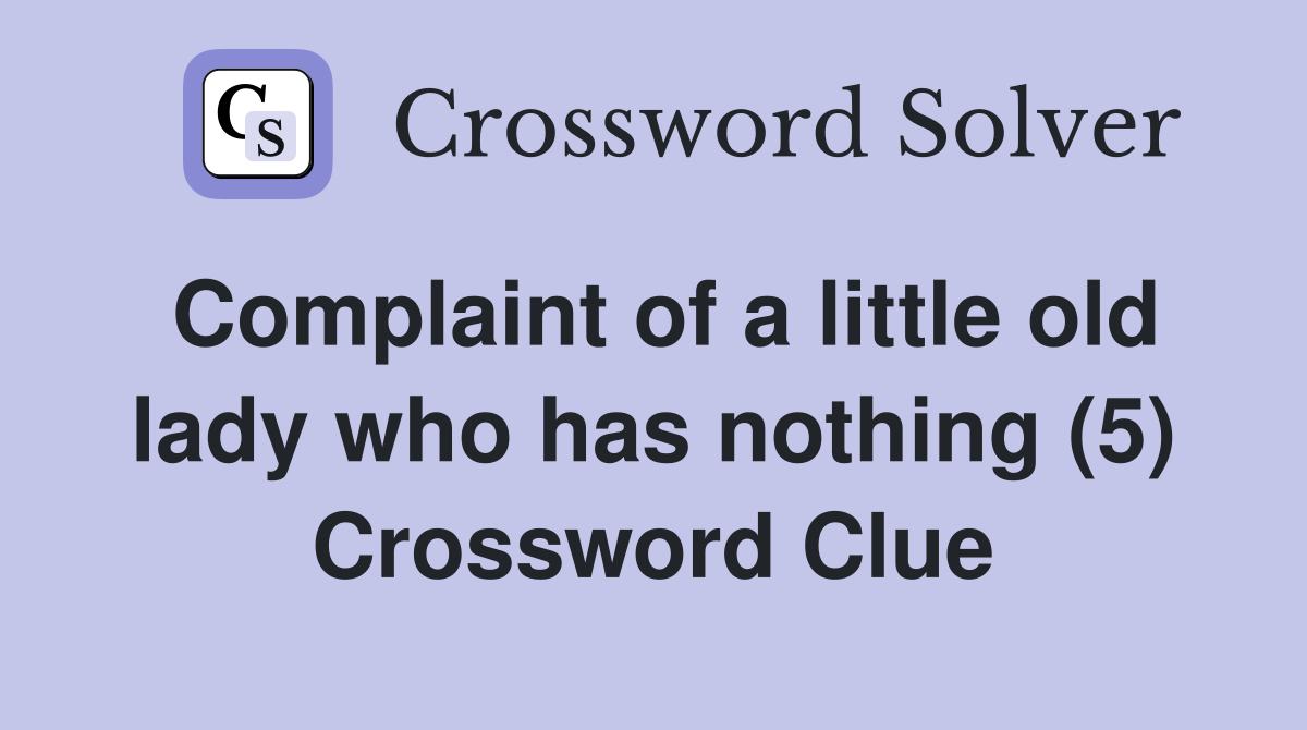 Complaint of a little old lady who has nothing (5) Crossword Clue