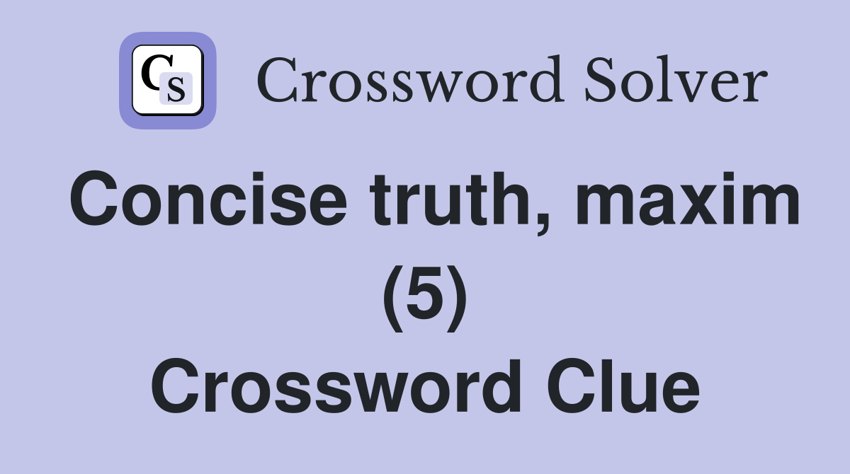 Concise truth maxim (5) Crossword Clue Answers Crossword Solver