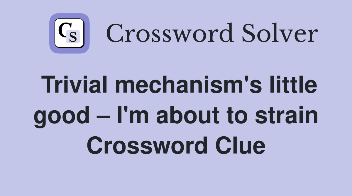Trivial mechanism s little good I m about to strain Crossword Clue