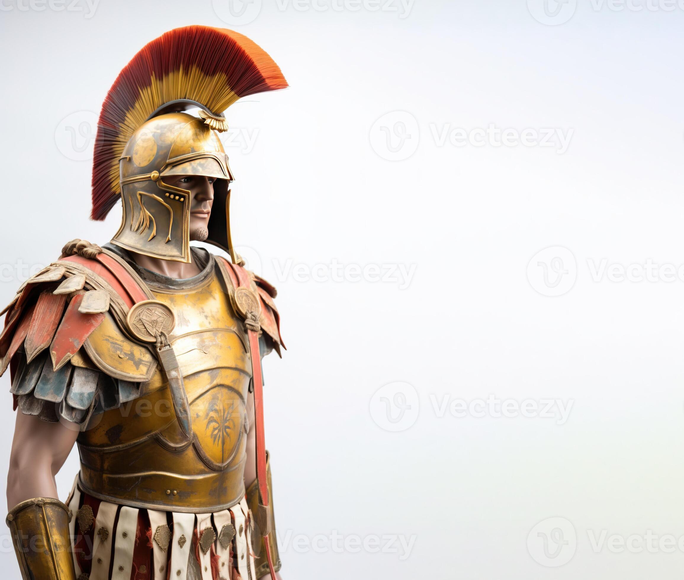 Ancient spartan trojan warrior in armor with weapons White background
