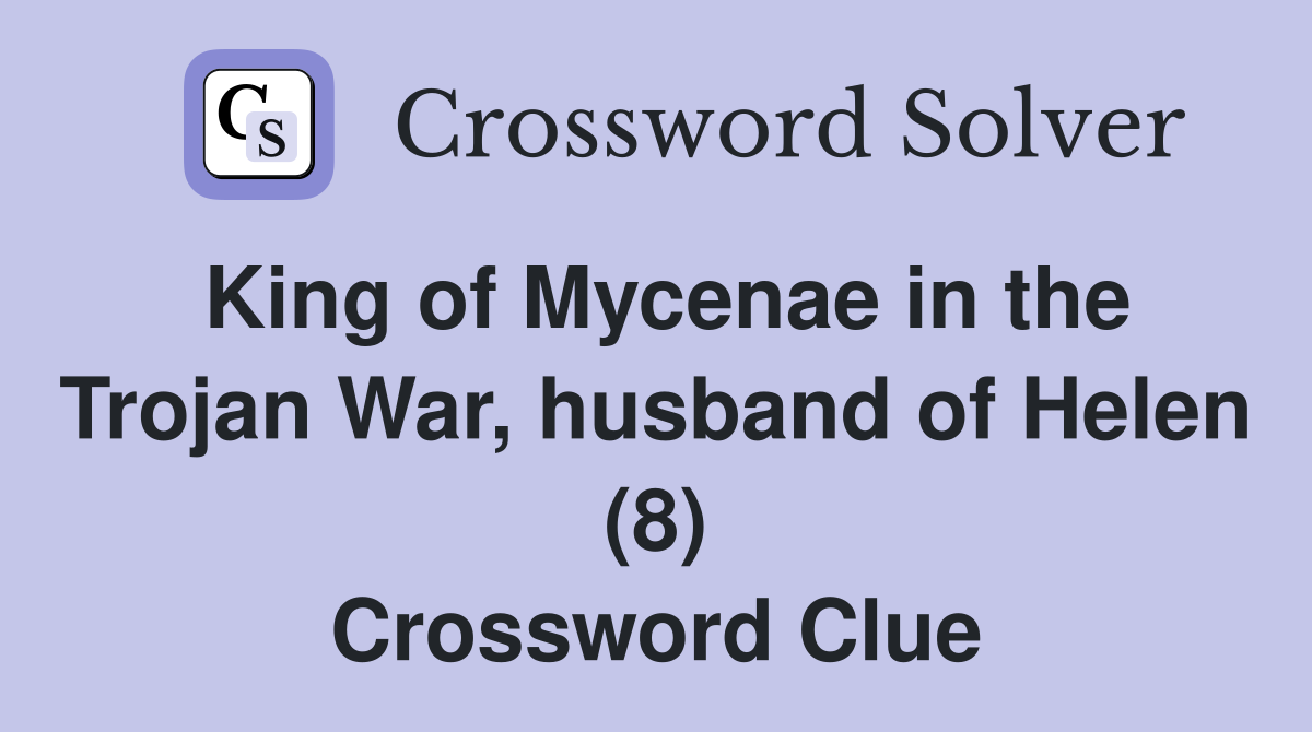 King of Mycenae in the Trojan War husband of Helen (8) Crossword