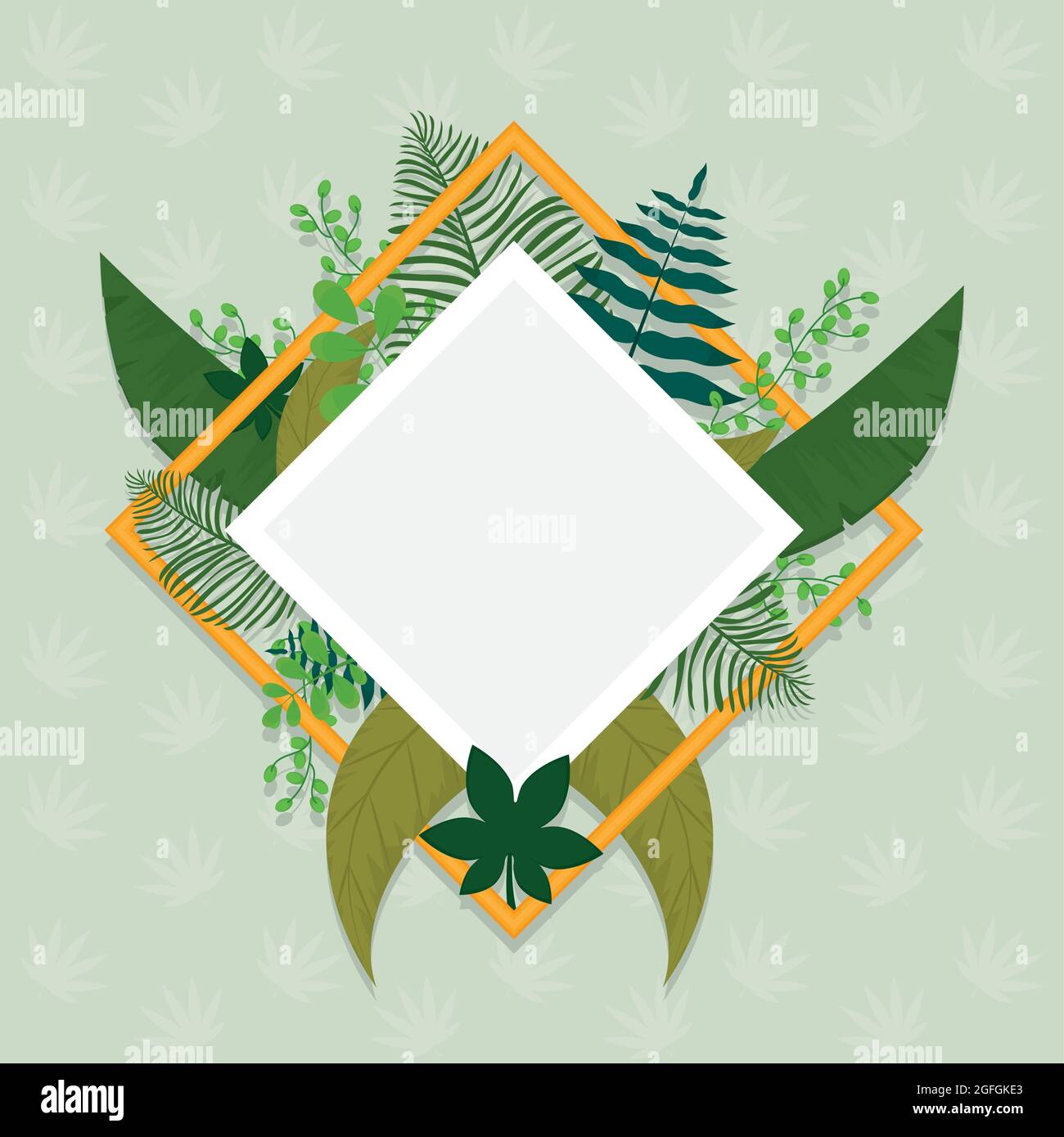 tropical leaves template with rhombus frame Stock Vector Image Art