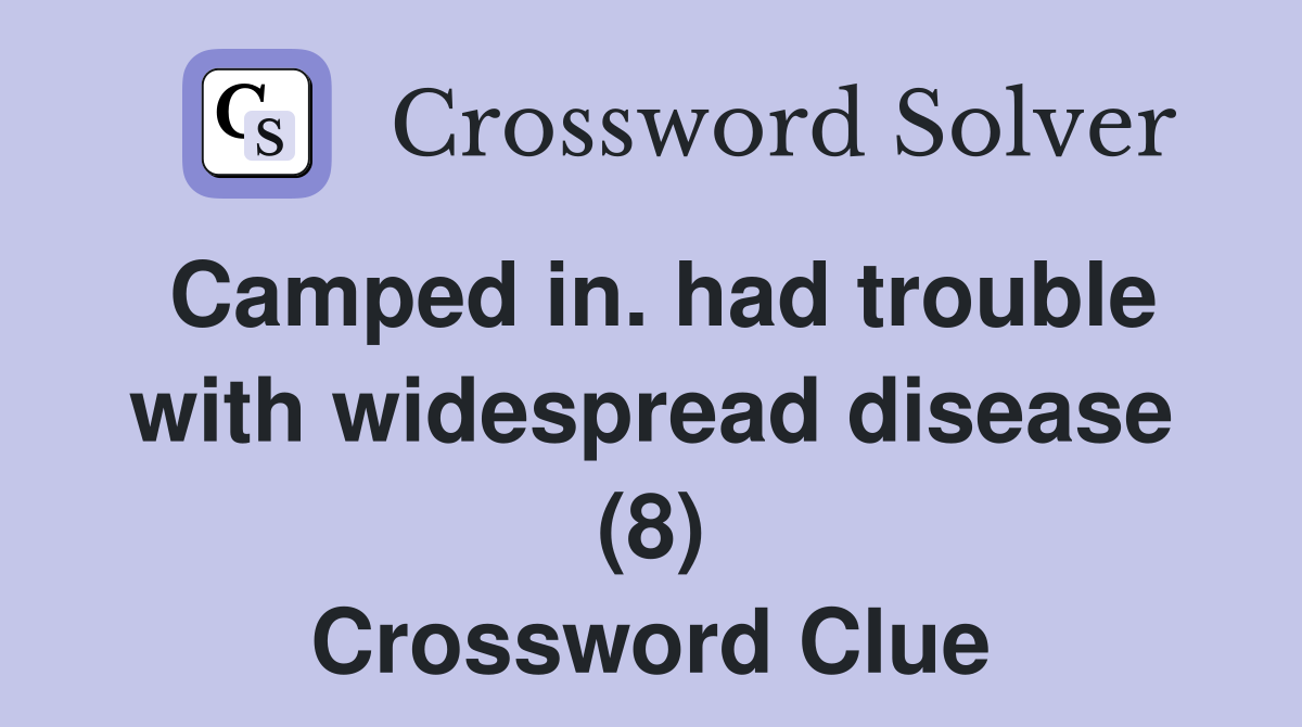 Camped in had trouble with widespread disease (8) Crossword Clue