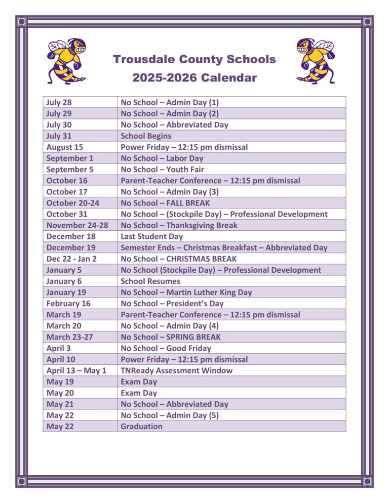 Trousdale County Schools Calendar