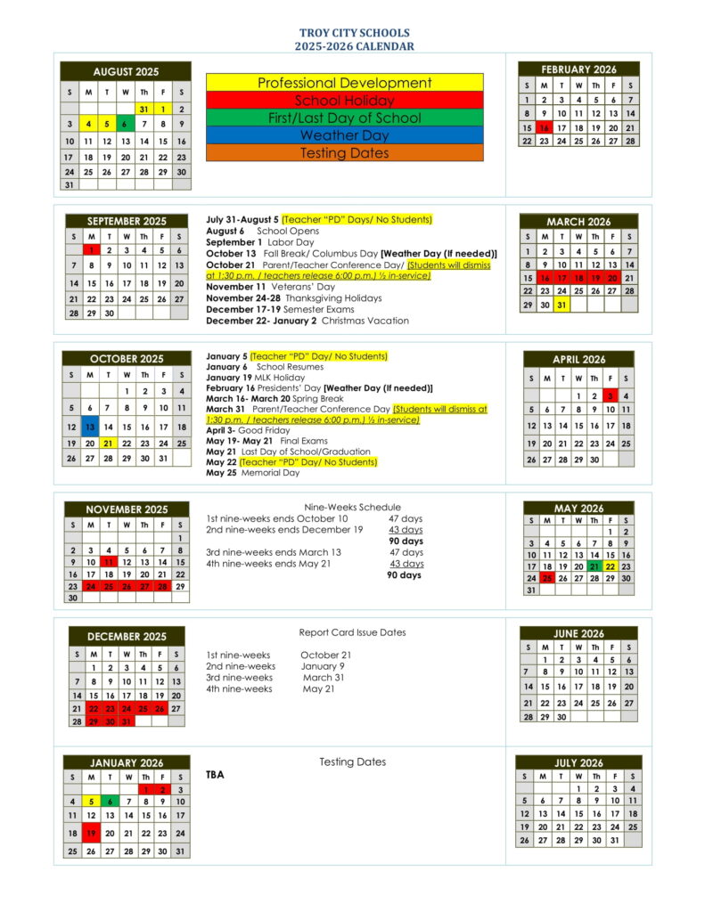 Troy City Schools al Calendar 25 26 Revised PDF EduCounty