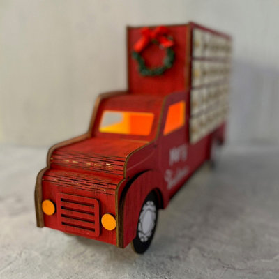 Advent Truck Wooden Reusable Advent Calendar Reddilight