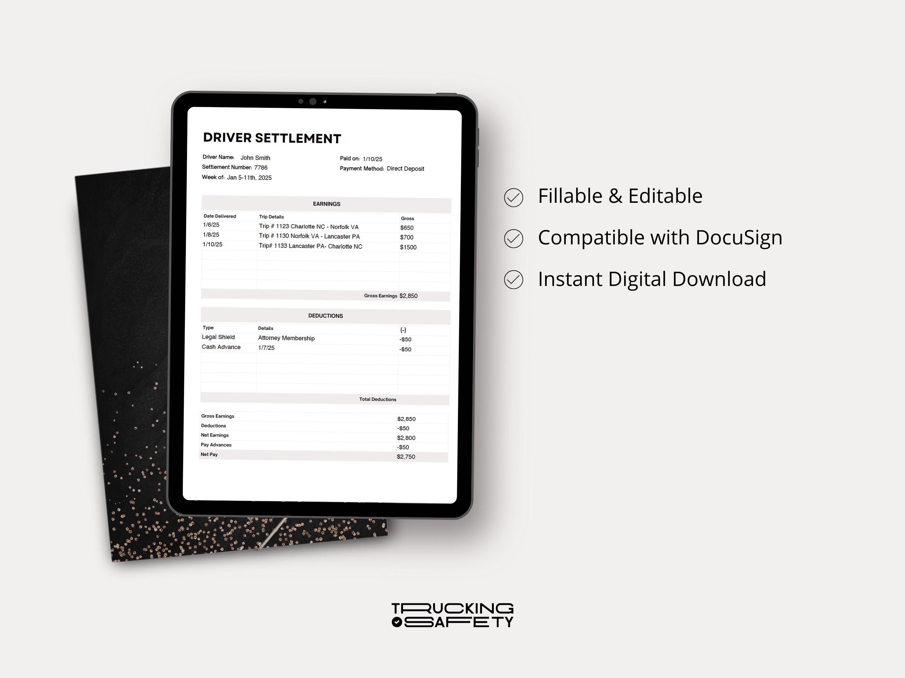 Trucking Driver Settlement Template Fillable PDF Download Etsy