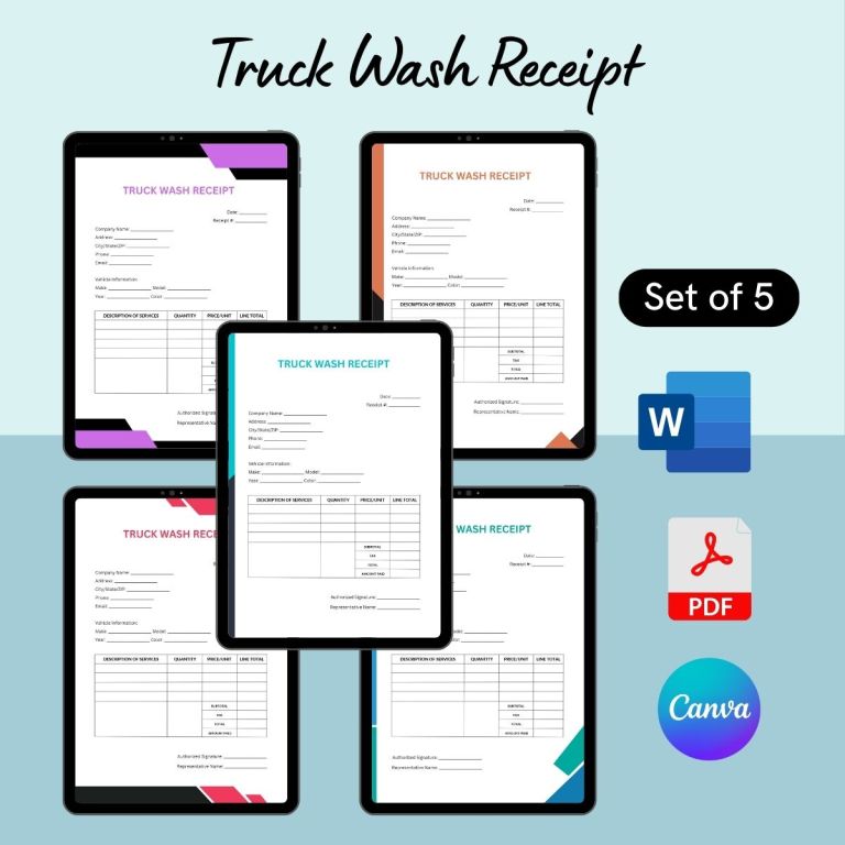 Truck Wash Receipt Template Blank Printable in Pdf Word