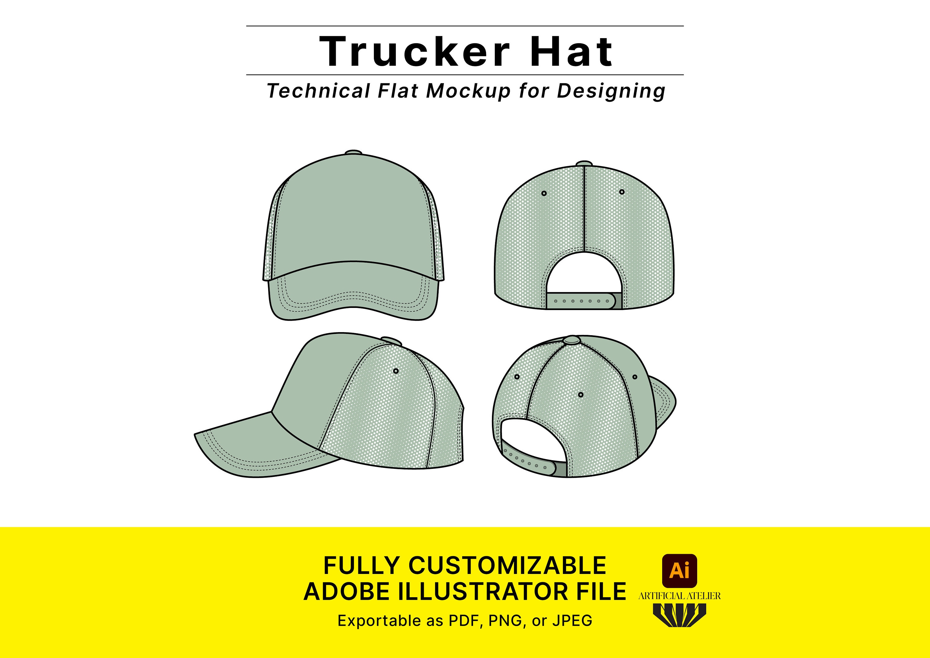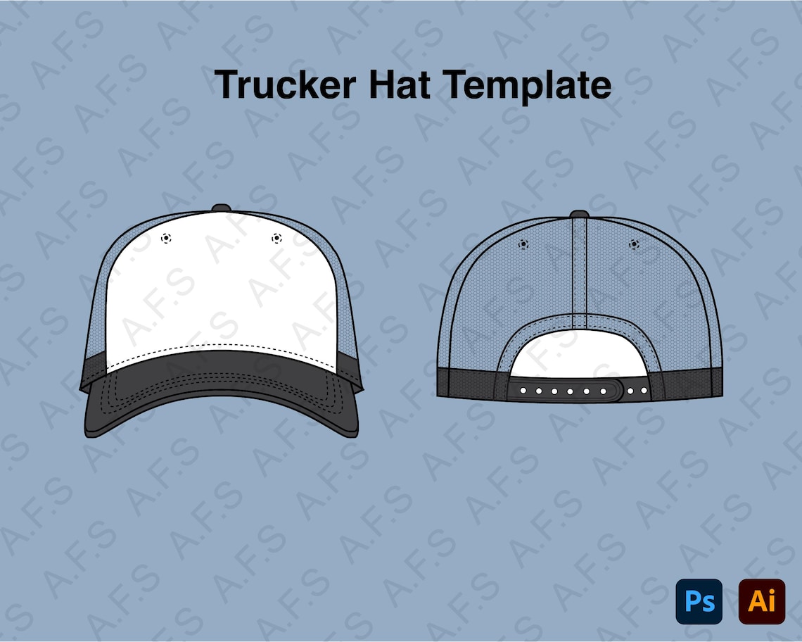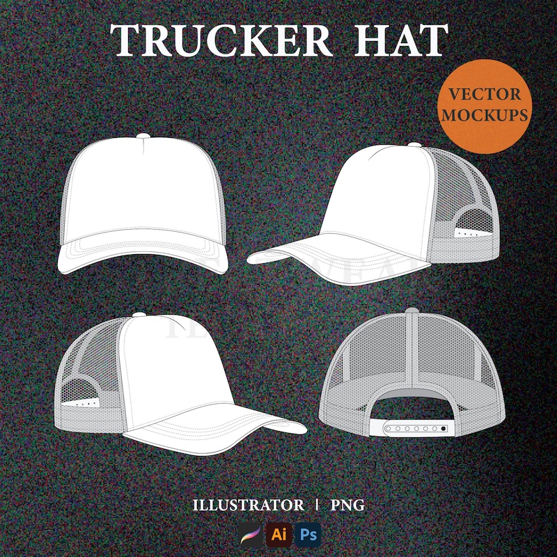 Trucker Hat Vector Mockup Template Adobe Illustrator Tech Pack Trucker