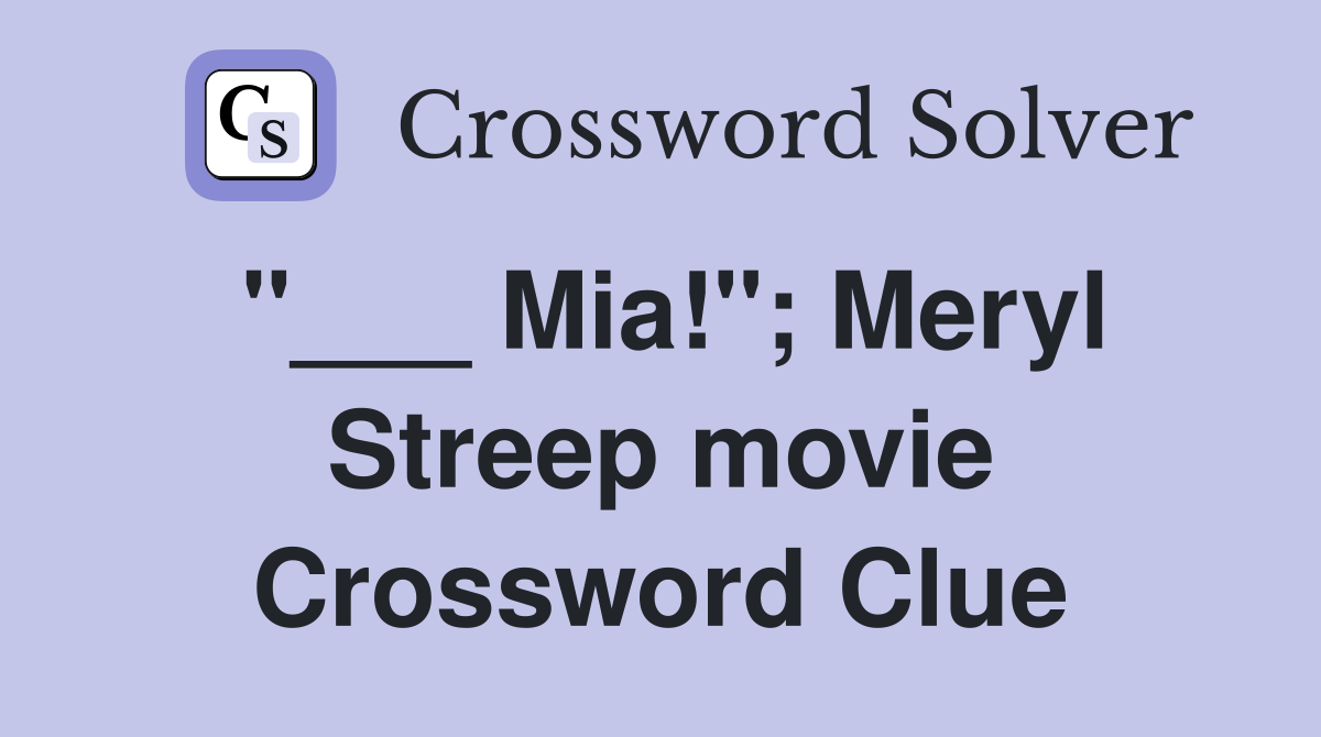 Mia quot Meryl Streep movie Crossword Clue Answers Crossword Solver