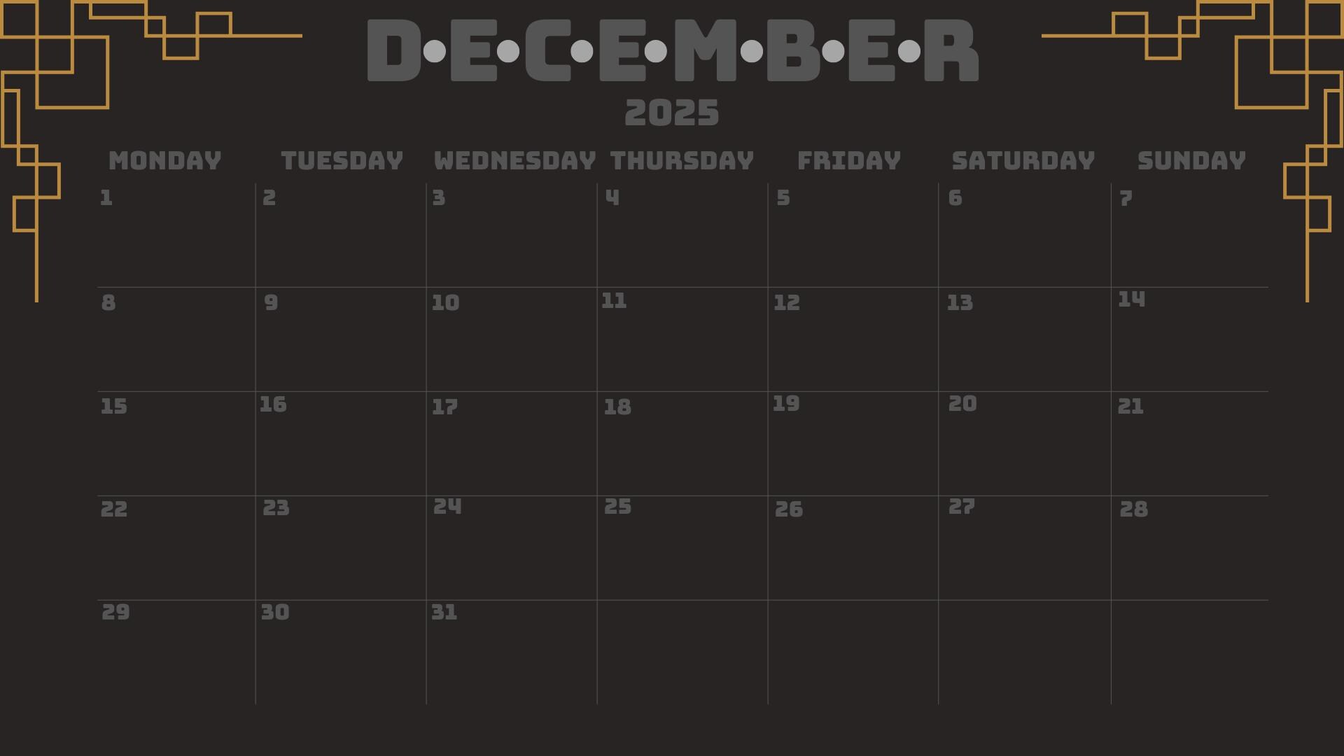 Printable Calendar Dark Theme Calendar for 2025 Digital File
