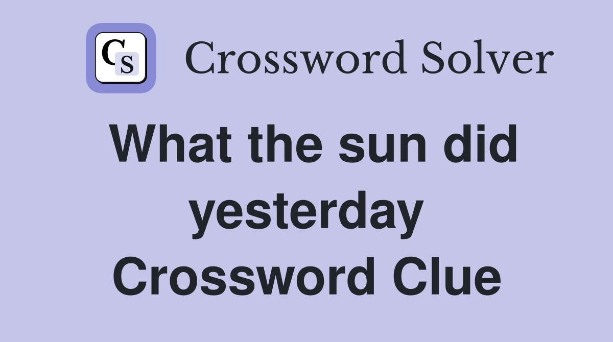 What the sun did yesterday Crossword Clue Answers Crossword Solver