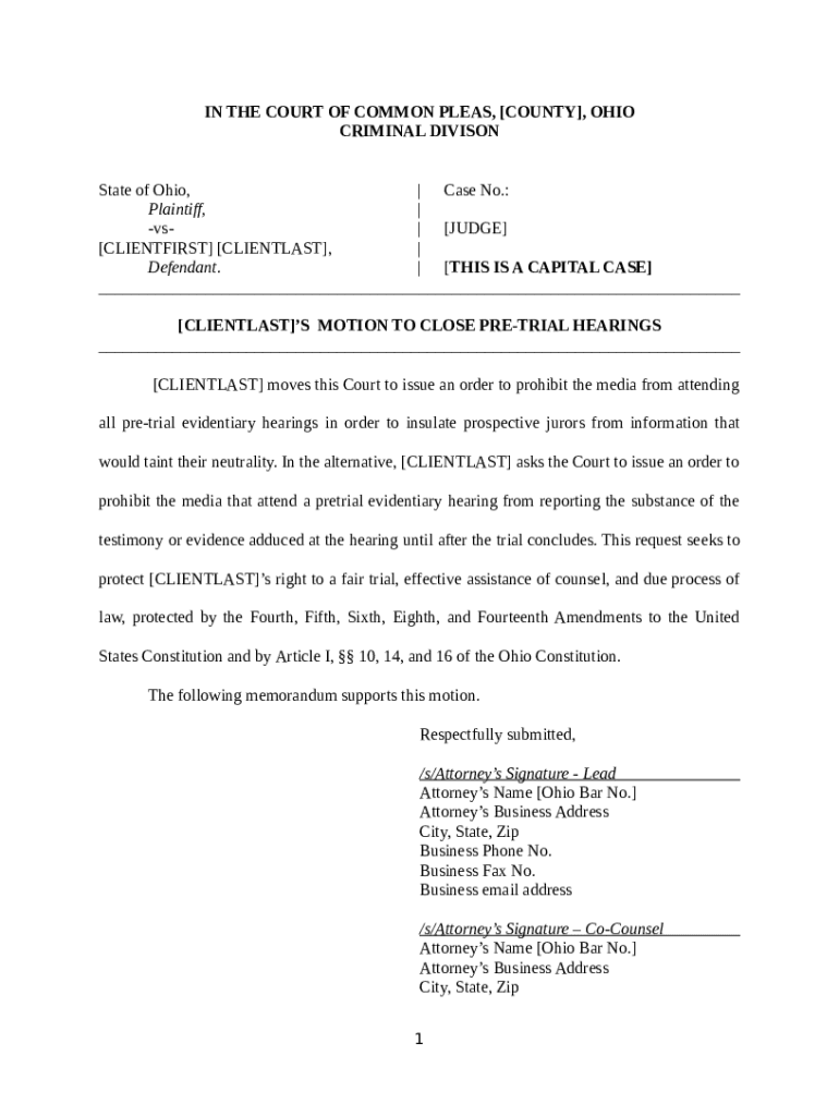 Petition for CQE Trumbull County Court of Common Pleas Doc Template