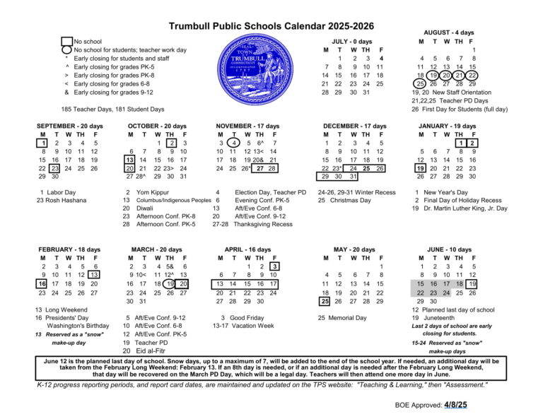 Trumbull Public Schools Calendar 2025 2026 Holidays