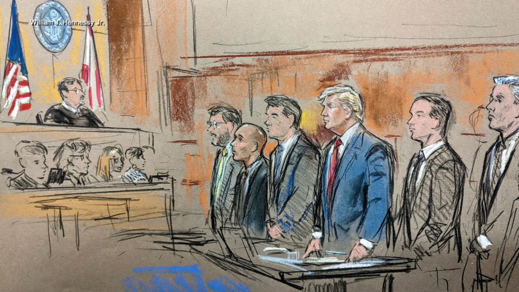 Updated court sketch in light of Donald Trumpin the court room