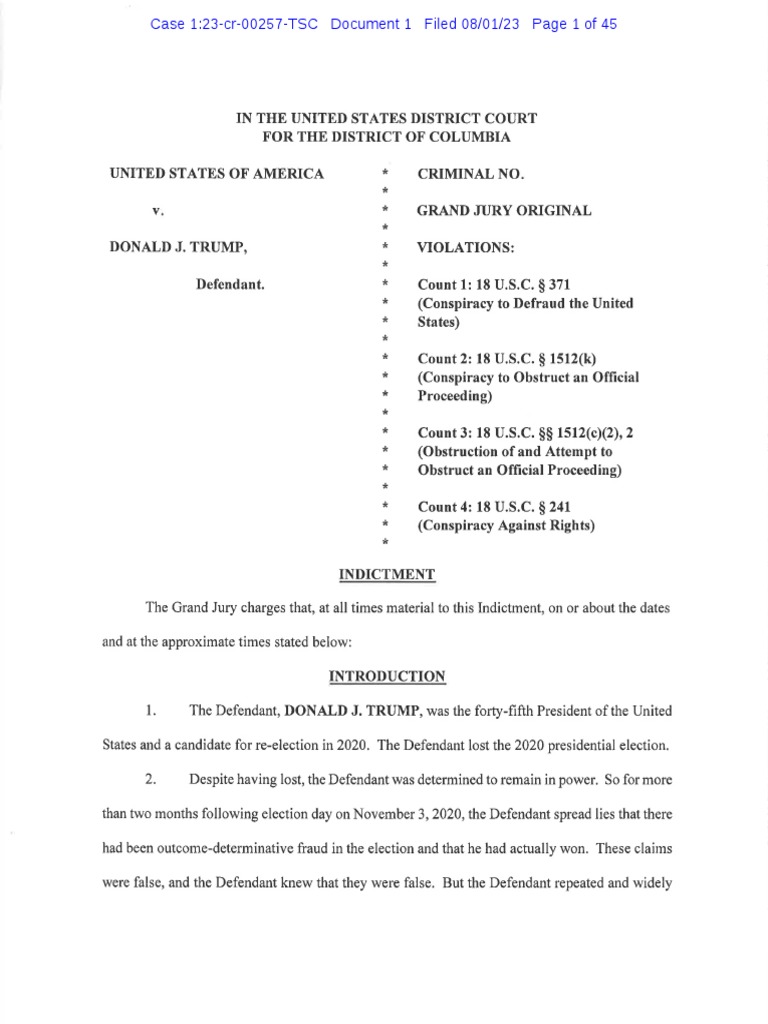 Read the Full Trump Indictment Here: Federal Indictment of Donald J