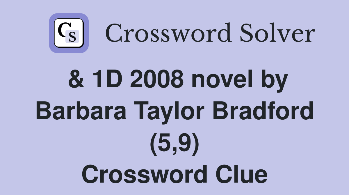 1D 2008 novel by Barbara Taylor Bradford (5 9) Crossword Clue