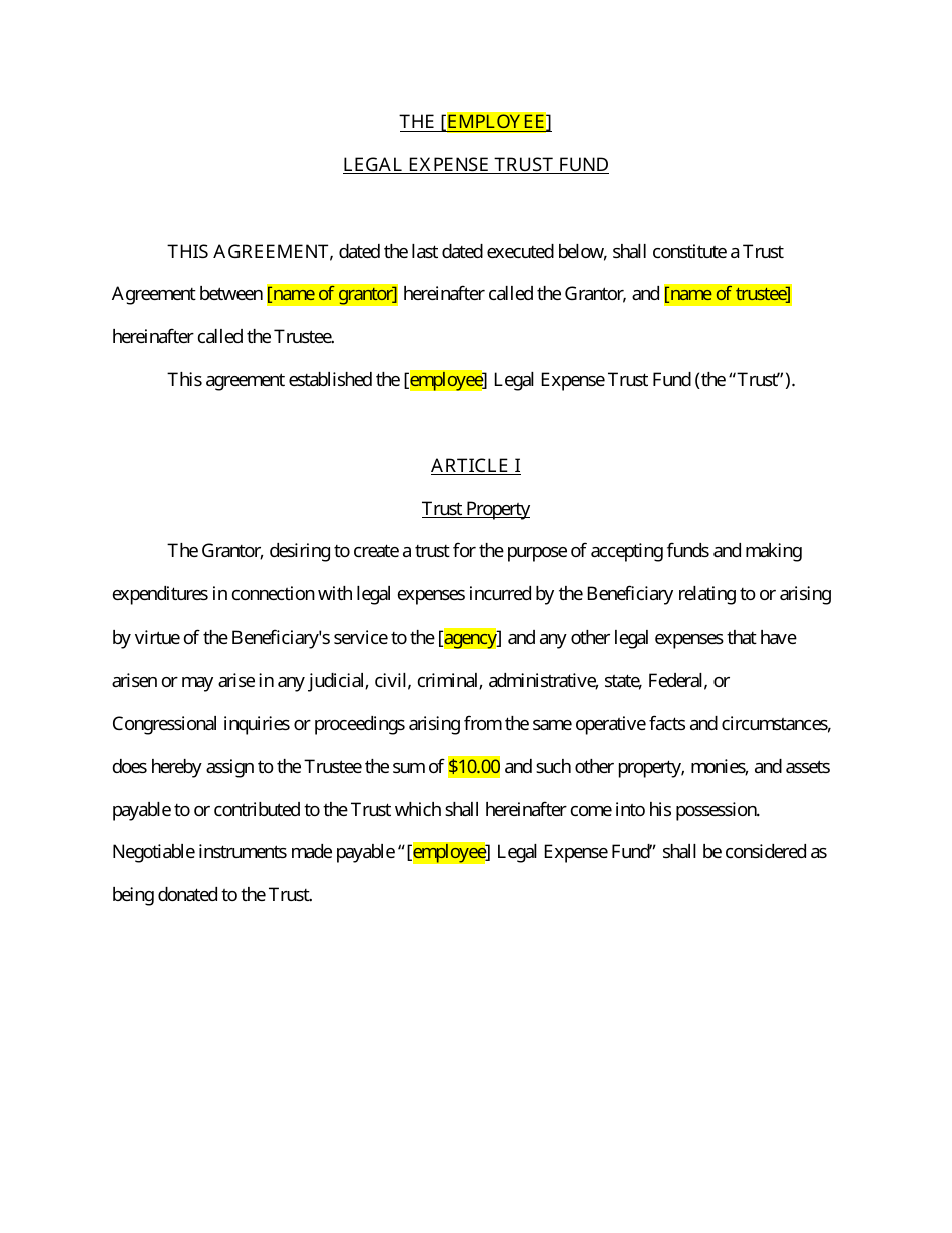 Legal Expense Trust Fund Agreement Template Fill Out Sign Online and
