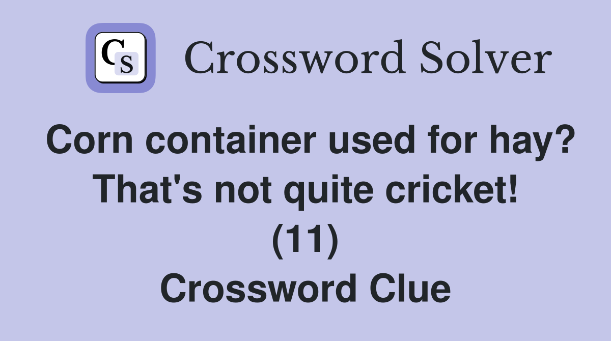 Corn container used for hay? That #39 s not quite cricket (11) Crossword
