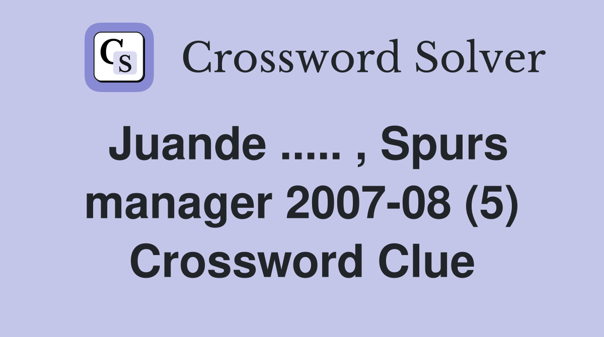 Juande Spurs manager 2007 08 (5) Crossword Clue Answers
