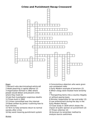 Crime and Punishment Recap Crossword Teaching Resources
