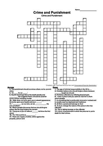 Crime and Punishment Crossword AQA Teaching Resources