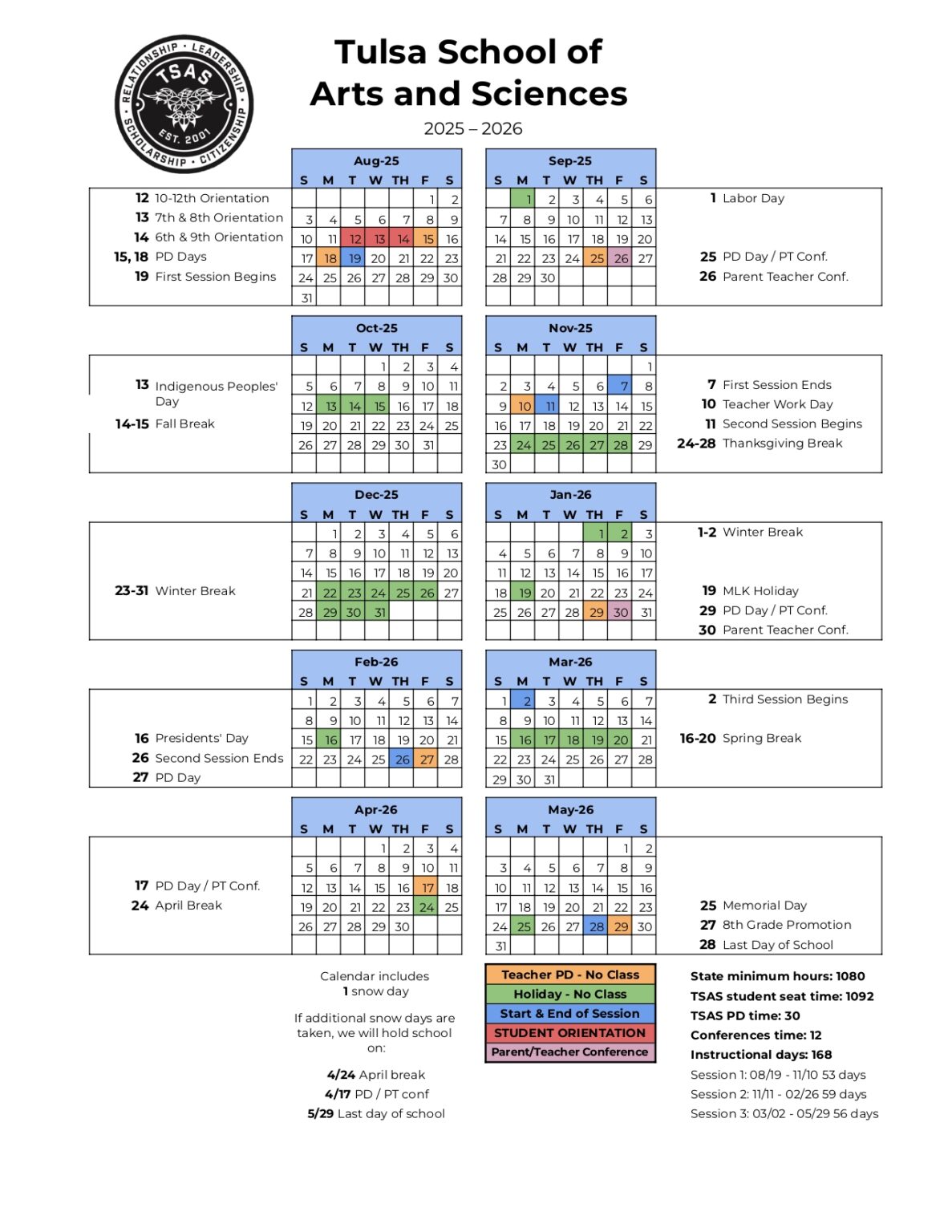Tulsa School of Arts and Sciences TSAS Calendar Revised PDF EduCounty