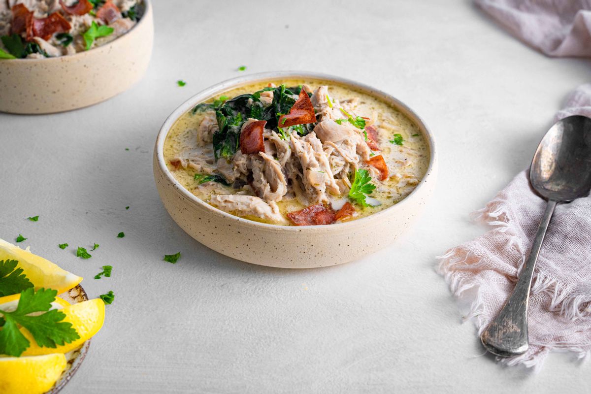 Greek Chicken Soup for a Budget Friendly Clean Eating Dinner Idea