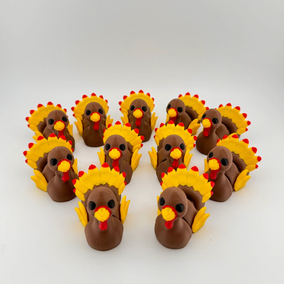 3D Printed Articulating Turkeys 2x2x2in Thanksgiving Décor Place