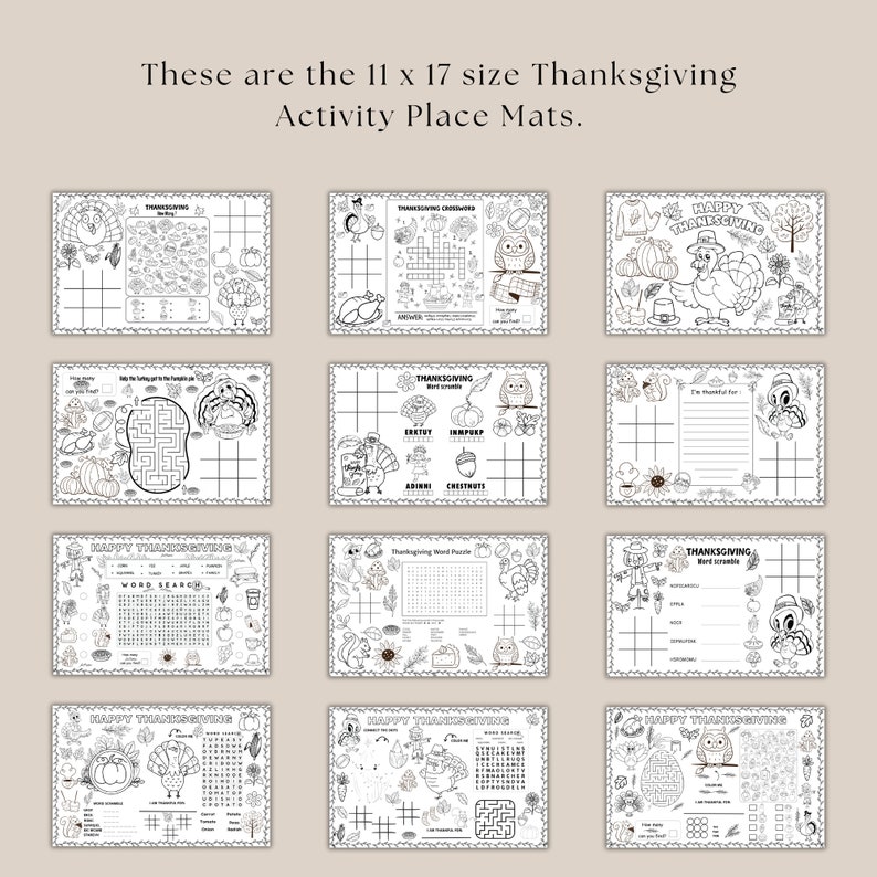 Thanksgiving Activity Placemats for Kids Activity Mat Table Decor for