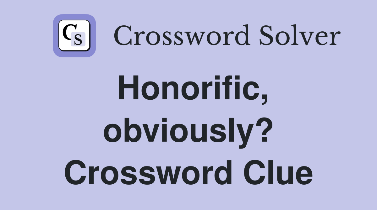 Honorific obviously? Crossword Clue Answers Crossword Solver