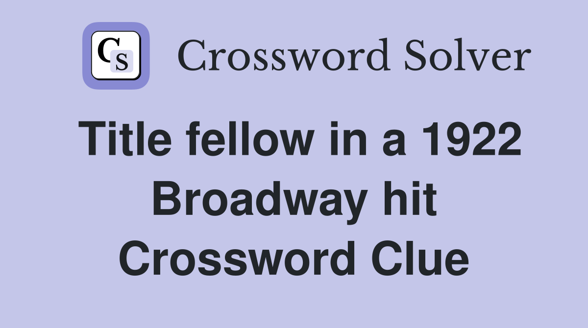 Title fellow in a 1922 Broadway hit Crossword Clue Answers