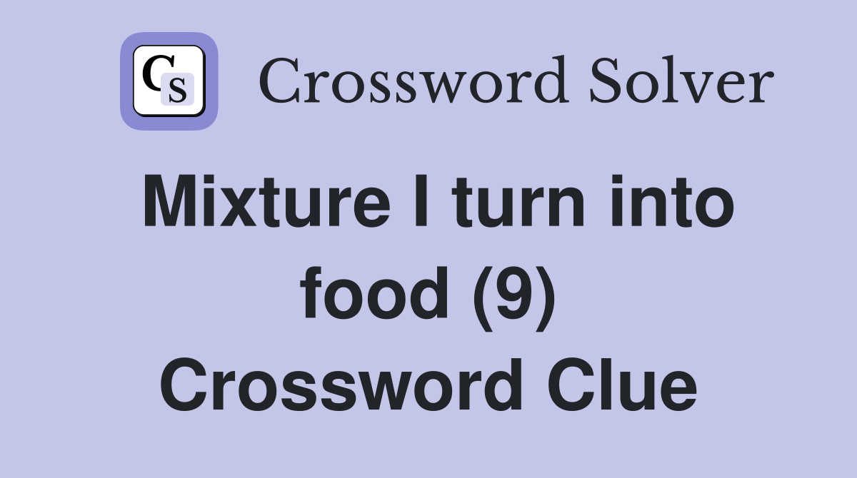 Mixture I turn into food (9) Crossword Clue Answers Crossword Solver