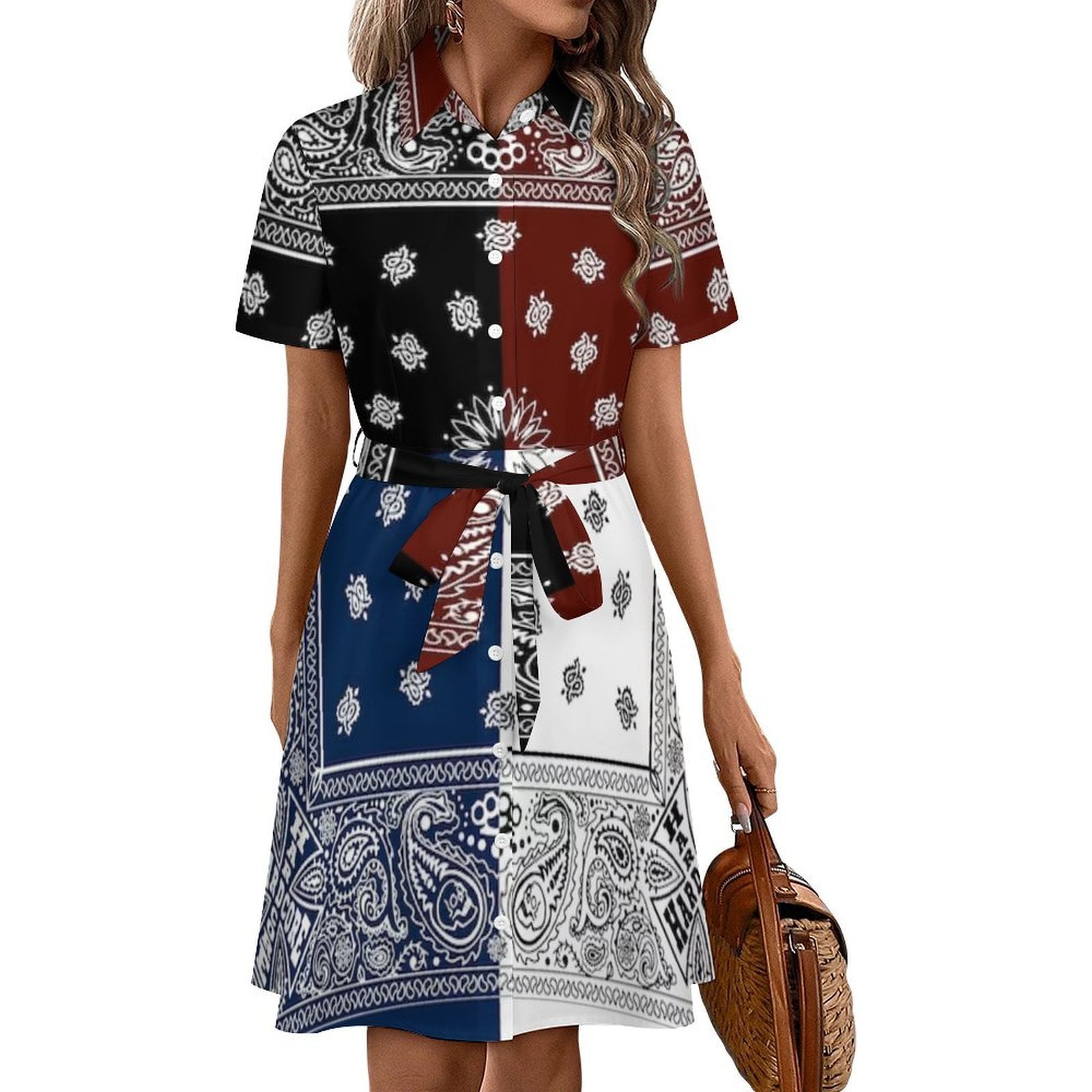 Bandana Womens Shirt Dresses Women #39 S Short Sleeve Dress Turn Down