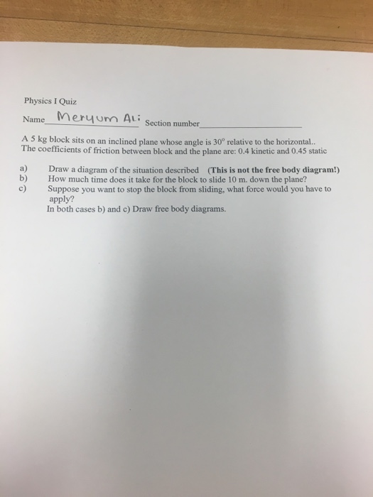 Solved A 5 kg block sits on an inclined plane whose angle is Chegg com