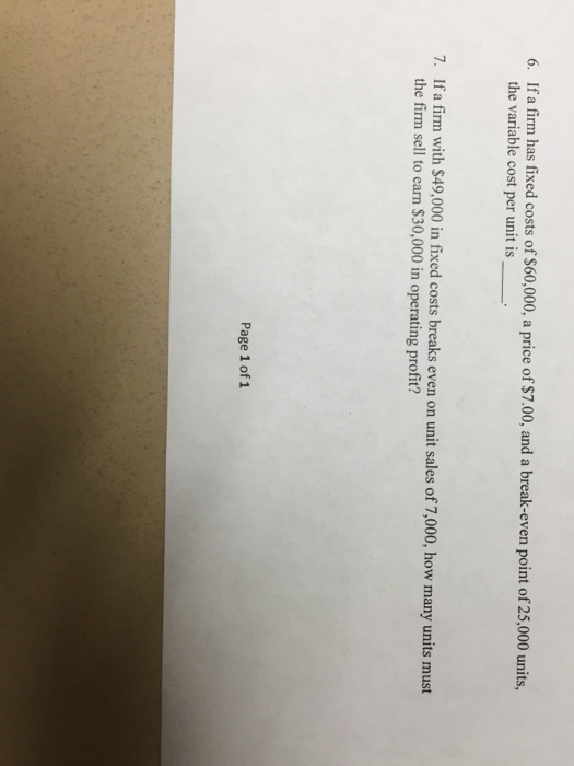 Solved If a firm has fixed costs of $60 000 a price of Chegg com
