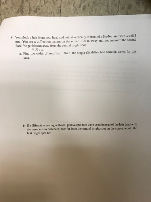 Solved 8 You pluck a hair from your head and hold it Chegg com