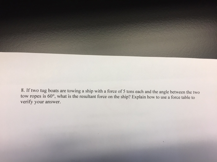 Solved 8 If two tug boats are towing a ship with a force of Chegg com