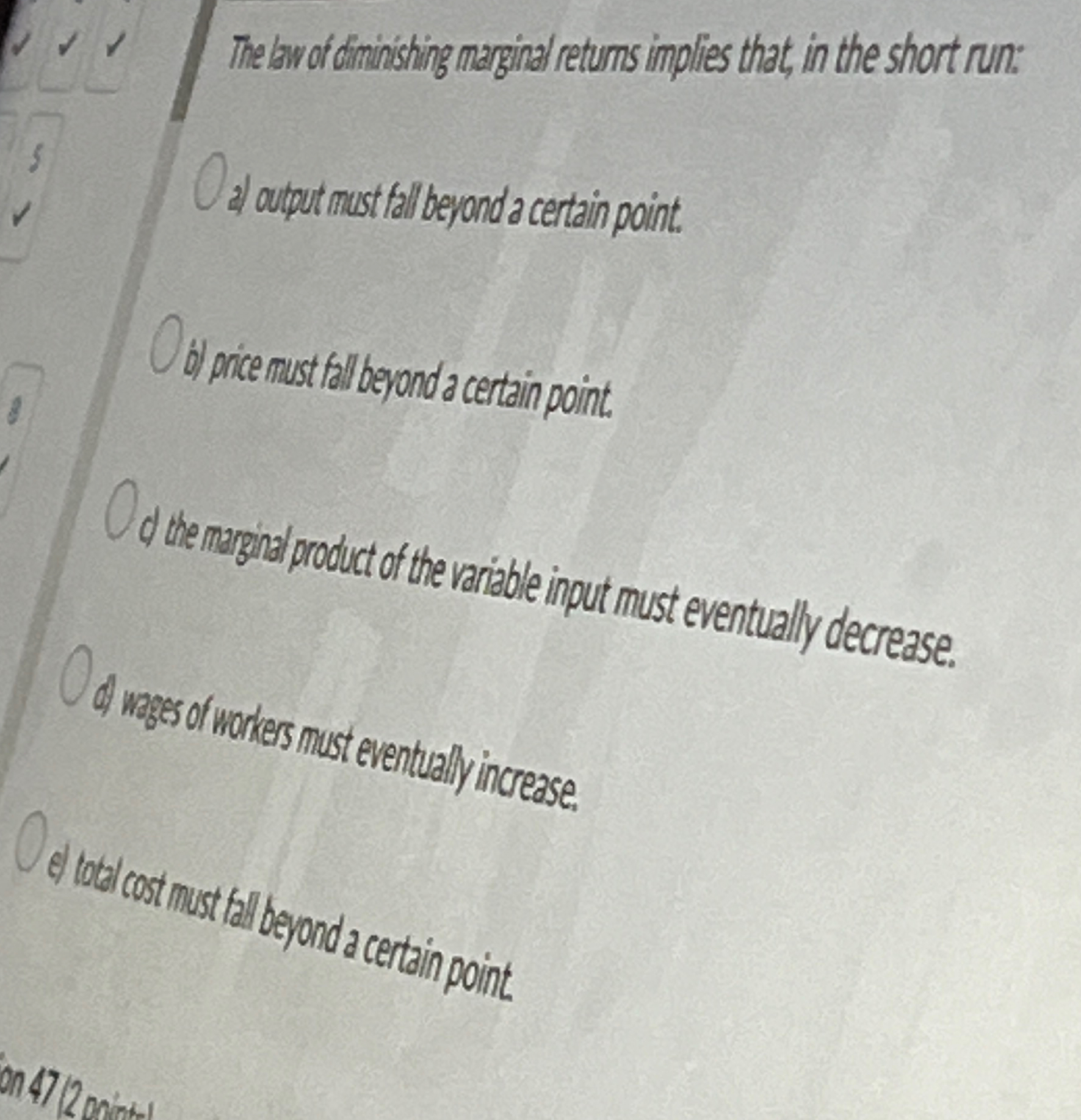 Solved The bwo of diminishing magrina/ retums implies that Chegg com