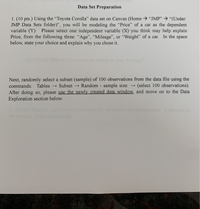 Solved using the quot toyota corola quot data set on canvas you Chegg com