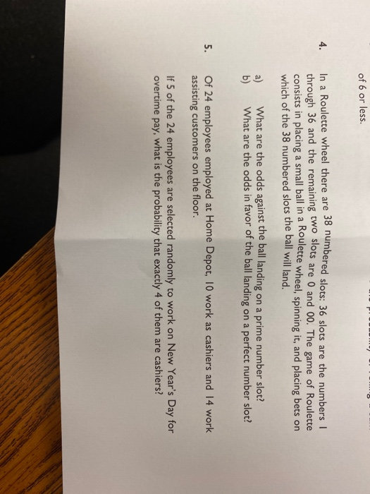 Solved of 6 or less 4 In a Roulette wheel there are 38 Chegg com