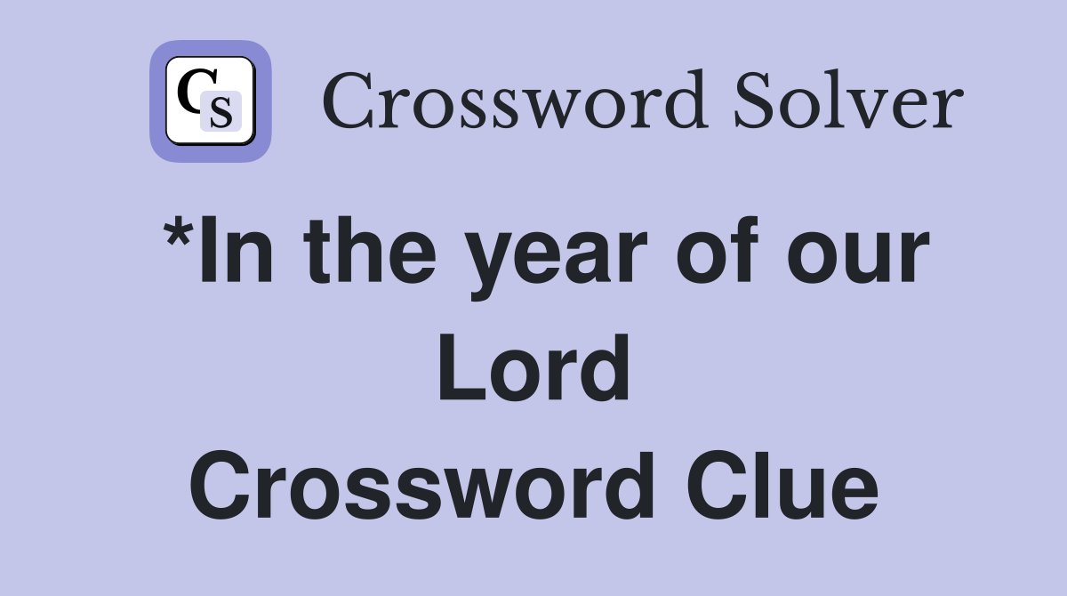 *In the year of our Lord Crossword Clue Answers Crossword Solver