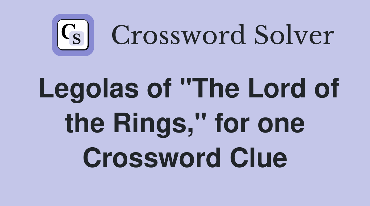 Legolas of quot The Lord of the Rings quot for one Crossword Clue Answers