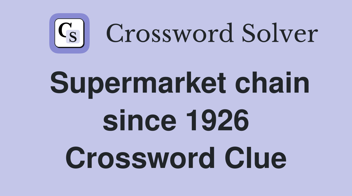 Supermarket chain since 1926 Crossword Clue Answers Crossword Solver