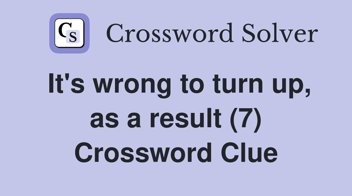 It #39 s wrong to turn up as a result (7) Crossword Clue Answers