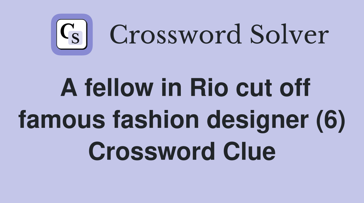 A fellow in Rio cut off famous fashion designer (6) Crossword Clue