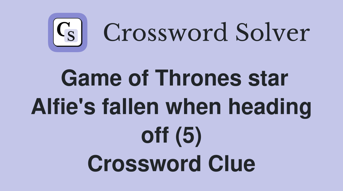 Game of Thrones star Alfie #39 s fallen when heading off (5) Crossword