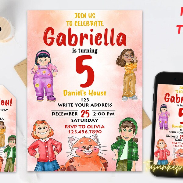 Editable Turning Red Birthday Invitation Template Printable Etsy Hong