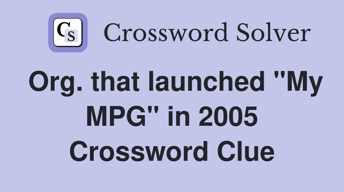 Org that launched quot My MPG quot in 2005 Crossword Clue Answers