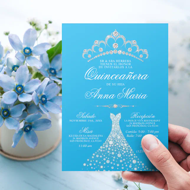 Spanish Quinceañera Mis Quince Blue Turquoise Invitation Zazzle